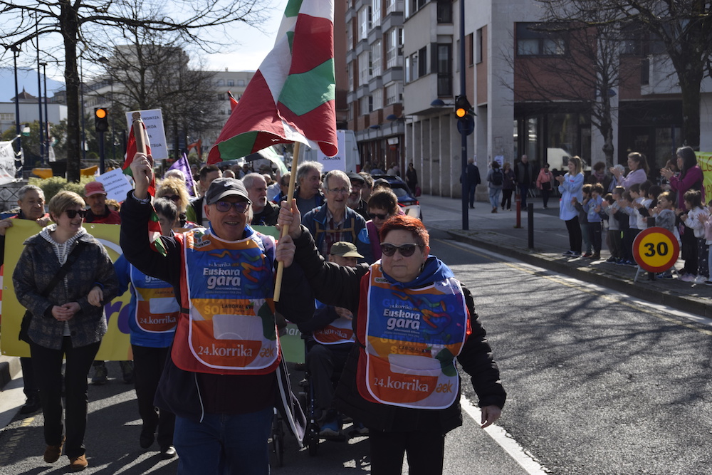 Gazte Izanen Korrikara eraman du aldarrikapena Duintasunak Duintasuna kalera atera da gaur, hileko lehen astelehenero egiten duen bezala. Gaurkoan baina, modu berezian egin du, Korrikara eraman baitu pentsio duinen aldeko aldarria. Duintasunak eta AEKk antolatu dute Gazte izanen korrika. Euskararen aldeko lasterketarekin bat egin aurretik, irakurketa pentsiodunek, Herriko Plazan.