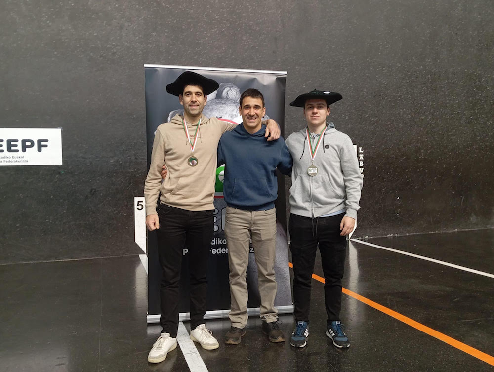 Aranguren eta Bidezabal txapelekin eta dominekin Zornotzan.EPLE Bikain EPLEko pilotariak asteburuan. Euskal Ligako Ezkuz Binakako Seniorren finalean Errenteria-Oreretako klubekoak izan dira irabazleak. Bidezabal eta Arangurenek Txumuluxueta klubeko Rekalde eta Meabe izan zituzten aurkari Zornotzako frontoian, eta bi jokoak irabazita, txapelak soinean eta dominak zintzilik egin zuten etxera buelta. Partzialak 10-8 eta 10-2koa. Lehenengo jokoan atzetik ibili ziren EPLEkoak 5-8 markagailuan, baina eutsi egin zioten partidari eta 5-0ko partzialarekin 10-8ra iritsi ziren bukaeran.