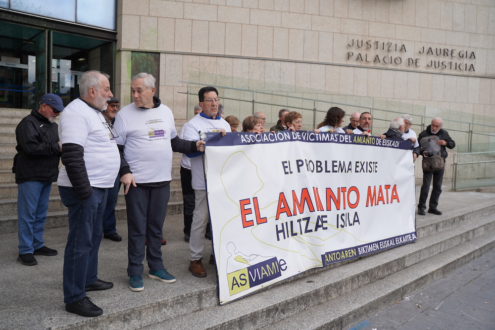 Asviameren elkarretaratzea epaitegi aurrean gaur. Amiantoarekin kontaktuan urteetan lan eginda, biriketako gaixotasuna diagnostikatu zioten 2024an Pasaiako herritar bati, eta gaur aztertu du Donostiako Gizarte Arloko lehenengo aretoak Lanerako Ezintasun Iraunkorra onar diezaioten jarritako demanda.