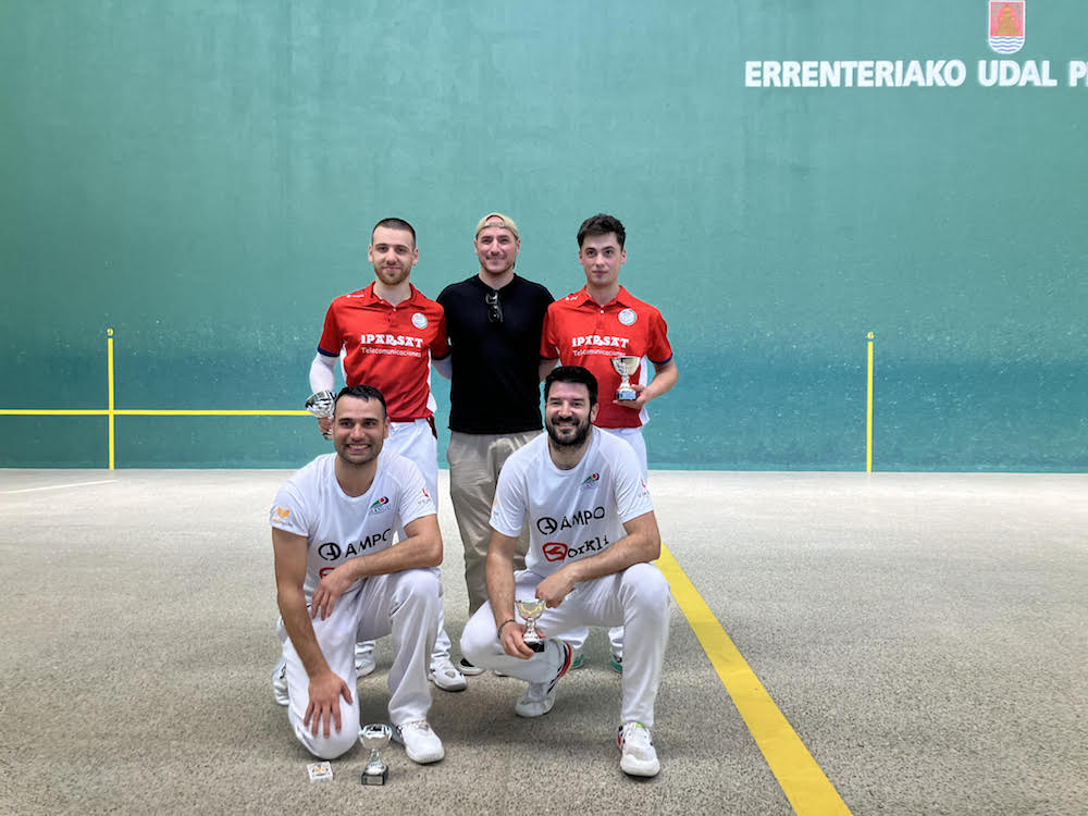 Etxezarreta, Ruben eta Anatz Zutik, sari banaketan.EPLE Udaberri txapelketako finala irabazi dute EPLEko pilotari Etxezarreta eta Anatzek larruzko paletan. Joan den ostegunean jokatu zuten final hori Agustina Otaola udal pilotalekuan, eta aurrez aurre izan zituzten Oiangu klubeko palistak. 15-9 eta 15-7, horiek azken emaitzak; argi adierazten dute horiek EPLEkoak hobeto aritu zirela kantxan. Pilotakada askoko partida, baita lehiatua ere, eta saria etxean.