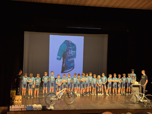 Lehiaketa taldea osatzen duten txirrindulariak zein txirrindularitza eskolako kide diren partaide guztiak aurkeztu zituzten Landetxen.