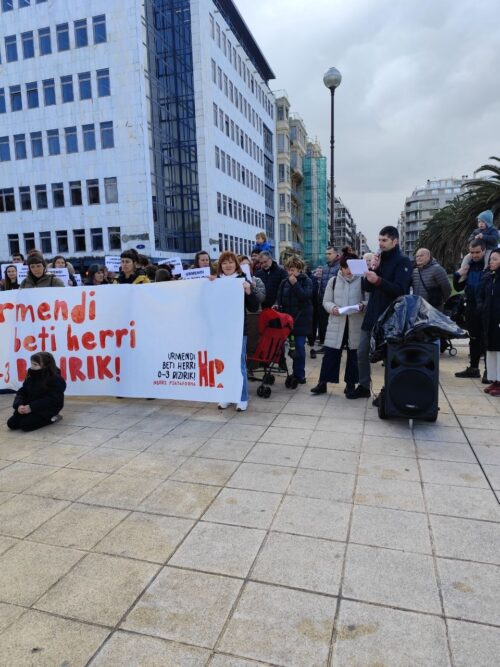 Urmendi beti herri, 0-3 herri plataformak deituta, elkarretaratzea egin dute Hezkuntza Sailaren ordezkaritzaren aurrean.