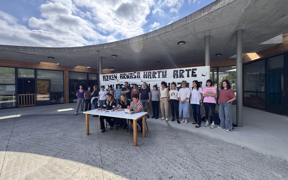 Hori horrela, Urmendiko langileek euren haserrea erakutsi dute eskolaren beraren aurrean zeudela.