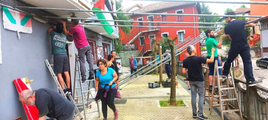 Faxismoaren kontrako pankarta hiru aldiz apurtu dutela auzo sarreran salatu du; azken aldian osorik txikitu dute.