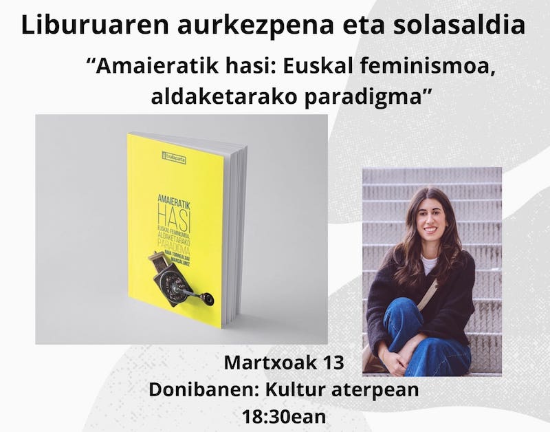Idazleak 'Amaieratik hasi. Euskal Feminismoa, aldaketarako paradigma' liburua aurkeztuko du bihar Donibaneko Kultur Aterpean, 18:30ean.