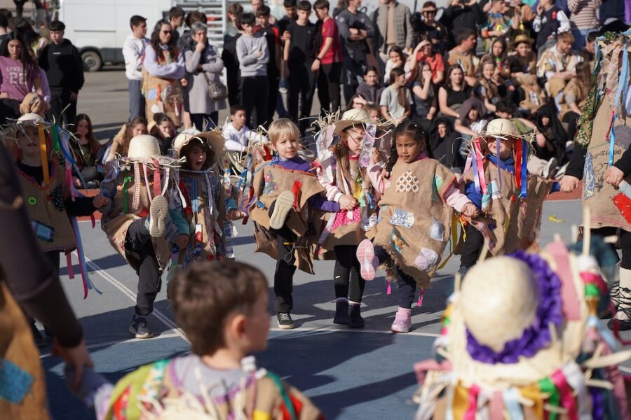 Urteko asteburu ederren eta koloretsuenari ekiteko urteroko desfilea eta dantzaldia egin dute Elizalde Herri Eskolako ikasleek. Iluntzean Done Eztebe plazak hartuko duen itxura hartu du patioak.