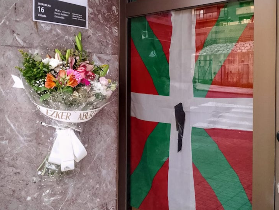 Hil zuten tokian, Aralar kaleko atarian, lore sorta eta begizta belzdun ikurrina jarri ditu herriko ezker abertzaleak.