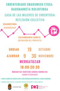 Emakumeen Etxea defibnitzeko hausnarketa prozesuaren azken bilera egingo dute. Bilera garrantzitsua izango da, uzatiletik hona egindako lanaren emaitza aurkeztuko baitute bertan, eta Errenteria-Oreretako Emakumeen Etxearen proposamenari azken zertzeladak emango dizkiote.