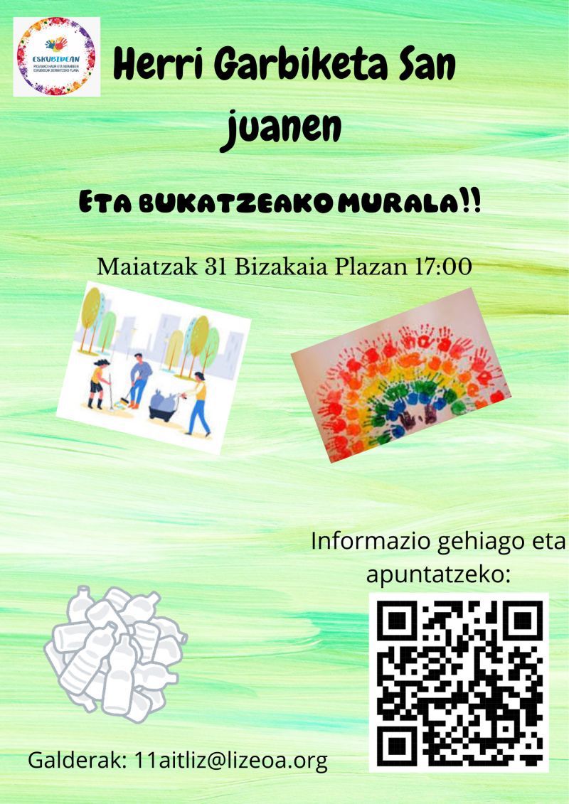 Pasaiako gazteek Donibane auzolanean garbitzeko deia luzatu diete herritarrei. Herri garbiketa maiatzaren 31n izango da, eta Bizkaia plazan izango da topaketa, 17:00etan.