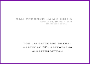 Sanpedroak prestatzen hasteko lehen bilera deitu du San Pedroko jai batzordeak. Alkateordetzan izango da bilera.