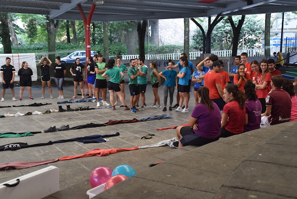 Piztu Lezoren santakrutzen atarikoen barruan, Gazte Olinpiadak Saldise plazan.