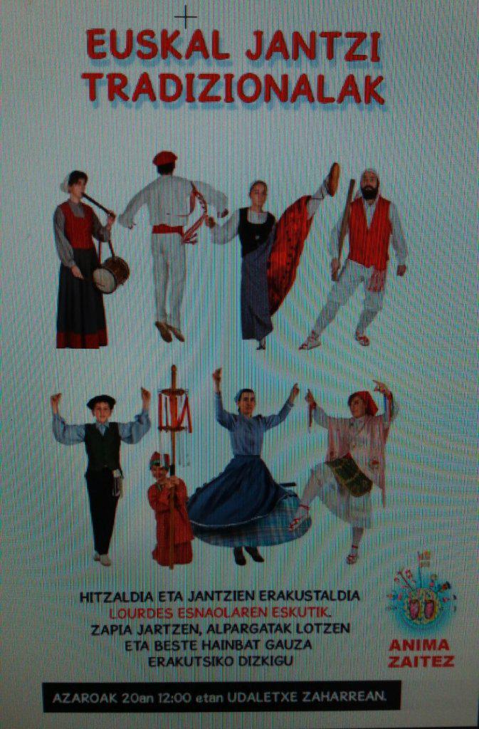 Euskal jantzi tradizionalei buruzko hitzaldia, Lourdes Esnaolaren eskutik. Zapiak jartzen, alpargatak lotzen eta beste hainbat kontu erakutsiko ditu.