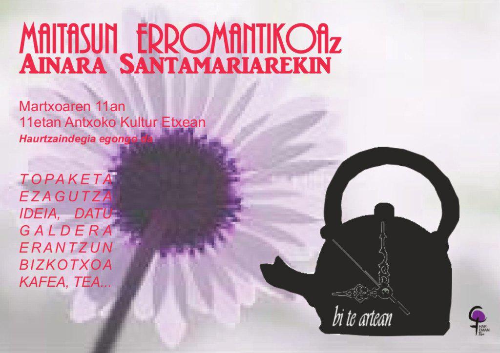 Harremantxo Talde Feministak antolatuta, Bi Te Artean iniziatibaren barruan, Maitasun erromantikoaren gaineko hitzaldia eta solasaldia.