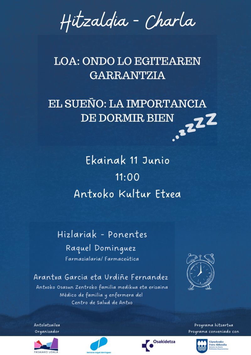Ekainaren 11n, ‘Ondo lo egitearen garrantzia’ Antxoko Kultur Etxean, 11:00etan.