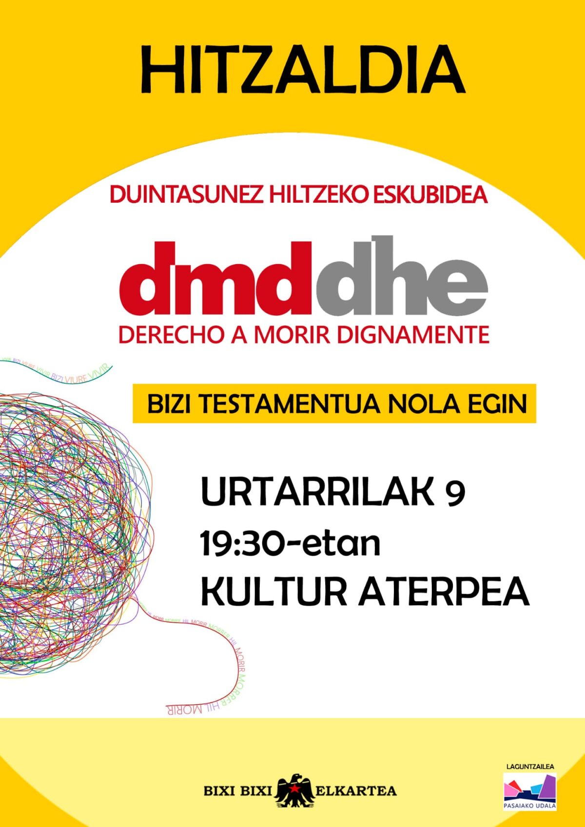 Bixi-Bixi Kultur Elkarteak hitzaldia antolatu du Duintasunez hiltzeko eskubidea; bizi testamentua nola egin titulupean. Kultur Aterpean izango da, astelehenean, 19:30ean. Pasaiako Udalak sustatu du.