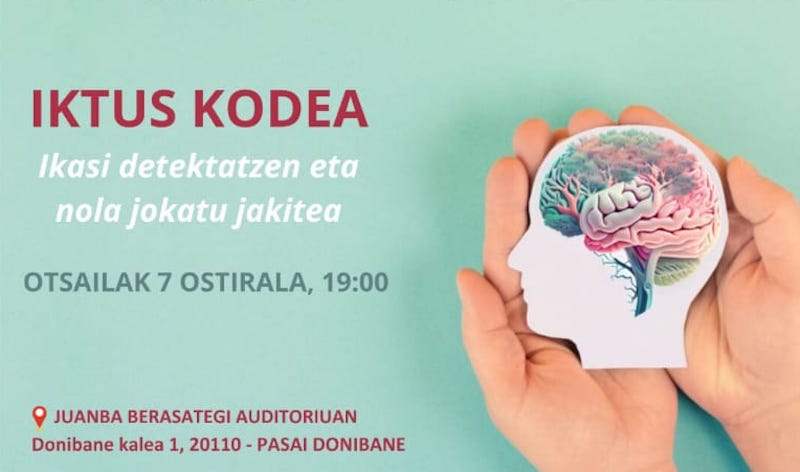 Aiton-amonen Aterpeak iktusa detektatzen ikasteko hitzaldi bat antolatu du otsailaren 7rako. Hitzaldiak Iktus kodea du izena, eta Donibaneko Juanba Berasategi aretoan izango da, 19:00etan.