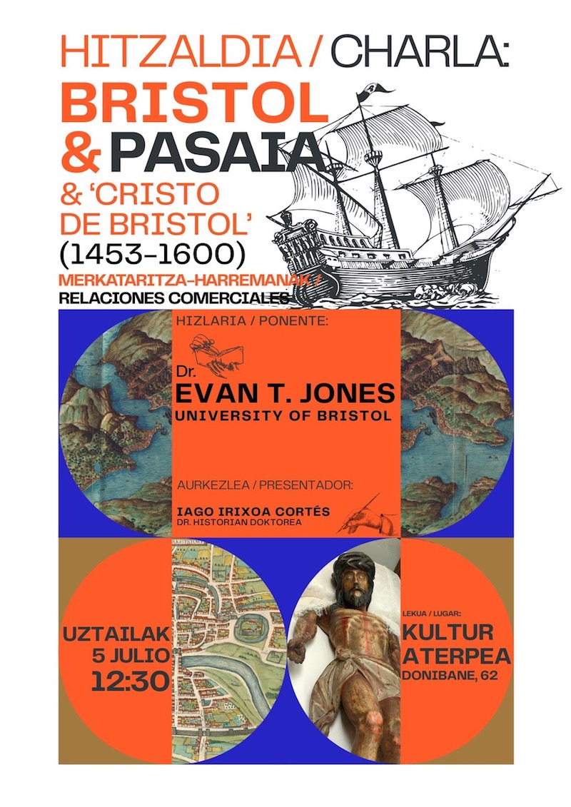 Uztailaren 5ean Pasaia, Bristol and El Cristo de Bristol (1453-1600) izeneko hitzaldia emango du Evan Jonesek Donibaneko Kultur Aterpean, 12:30ean.