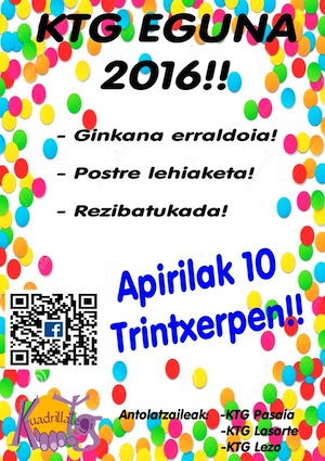 Kuadrillategi Eguna ospatuko dute gazteek Trintxerpen. Goizean ginkana egingo dute Trintxerpeko kale eta plazetatik barrena; ondoren postre lehiaketa eta bazkaria izango dira Serafin Esnaola plazan, eta arratsaldean Rezibatukada.