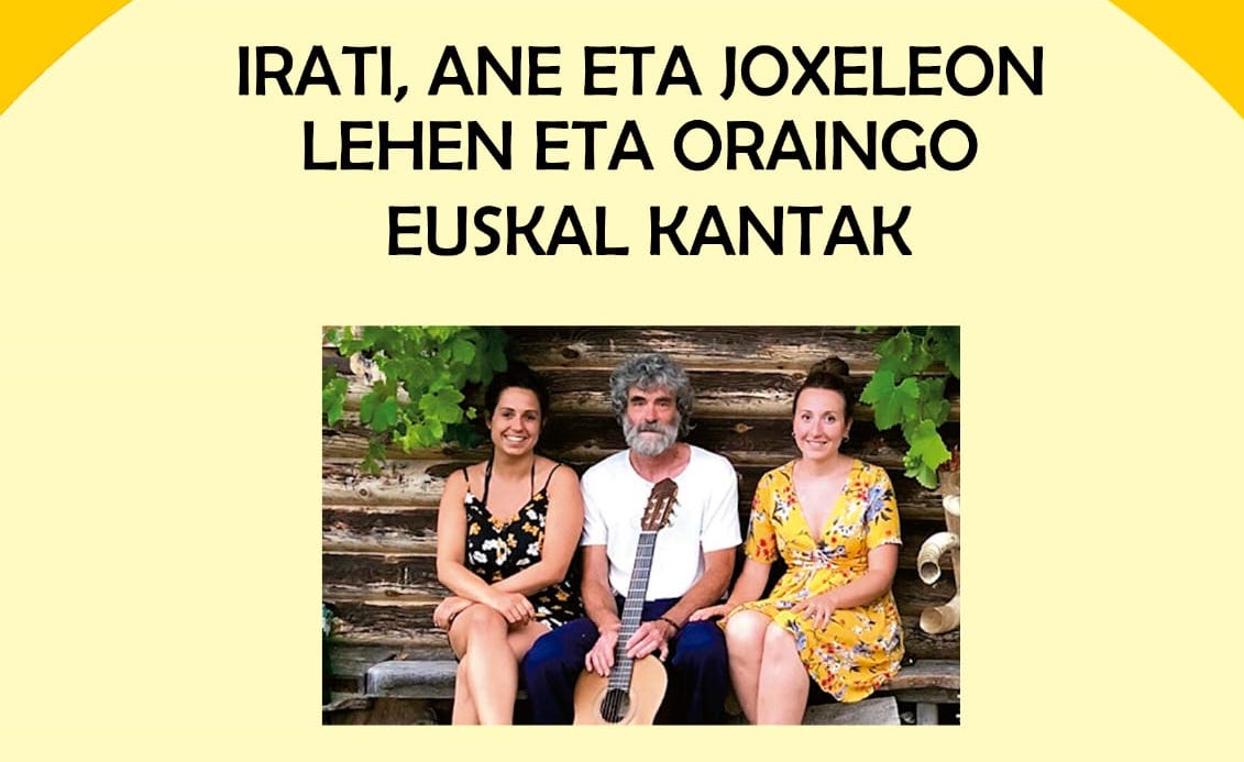 Bixi-Bixi Elkarteak kontzertua antolatu du ostiralerako: Irati, Ane eta Joxeleonek “lehen eta oraingo euskal kantak” eskainiko dituzte Kultur Aterpean 20:00etatik aurrera. Sarrera librea da.