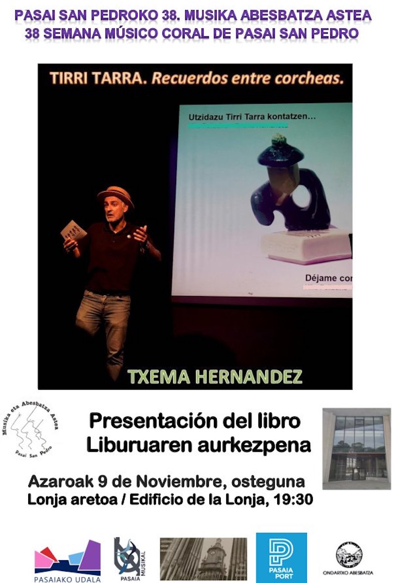 San Pedroko 38. Musika Abesbatza Astearen barruan, azaroaren 9an Txema Hernandez idazlearen Tirri Tarra. Recuerdos entre corcheas liburua aurkeztuko da Lonja aretoan, 19:30ean.