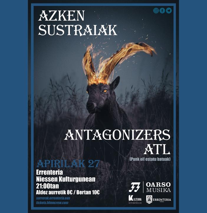 Punk Oi! kontzertua, Azken Sutraiak Beasaindik datorren punta-puntako taldeetako bat da. Goierritik etorriko dira azken diskoaren aurkezpen biraren barruan. Beraiekin batera Estatu Batuetako Antagonizers Atl taldea arituko da, Europan zehar egiten dabiltzan biraren parte. sarrerak 8 euro aurretik, 10 euro bertan.