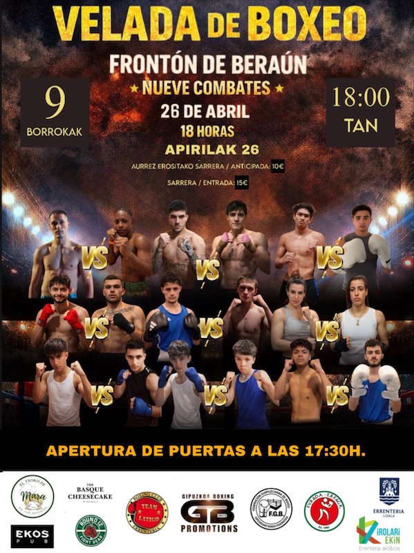 Boxeo jaialdia izango da Beraungo Erabilera Anitzeko Pistan Team Latigo Boxing Club-ak antolatuta, Errenteriako Udalaren laguntzarekin.